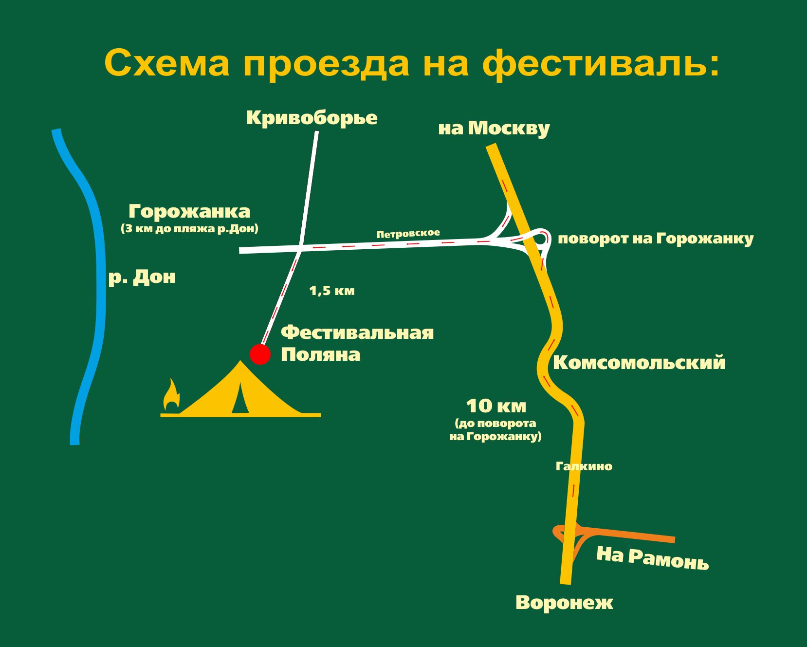 От Памятника Славы до фестивальной поляны: 17.00, 18.00, 18.30, 19.00, 19.30, 20.00, 21.00